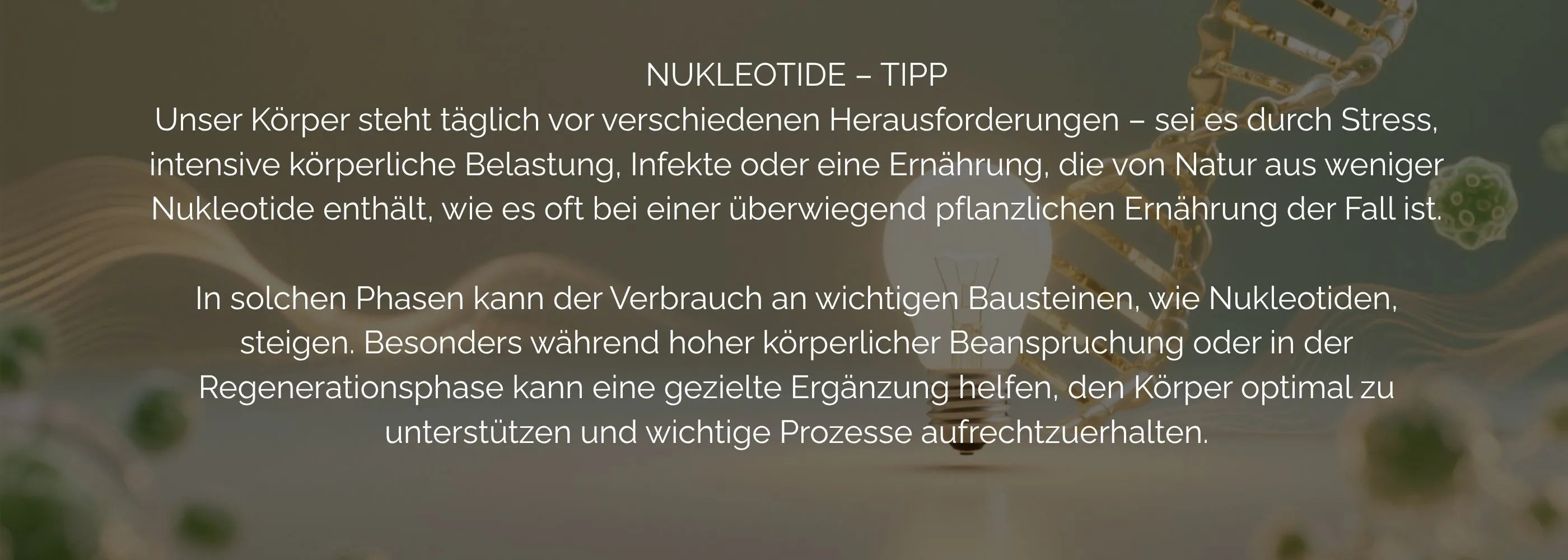 Natural effect thanks to our precisely defined, highly pure and individually selected nucleotide products