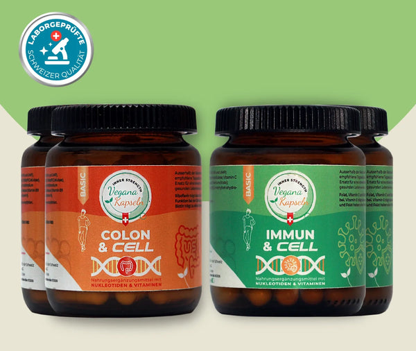 The IMMUN & CELL + NUKLEOTIDE capsules offer you a very high content of nucleotides and a special cold formula. They are lactose- and gluten-free, contain no artificial flavors and are produced gently. They therefore offer you optimum quality and high bioavailability.