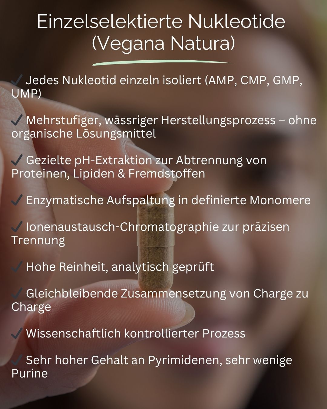 It is easy for the body if nucleotides are available as food supplements and are already individually selected - so they only need to be integrated. They are indispensable for cell division and cell renewal in a healthy metabolism.